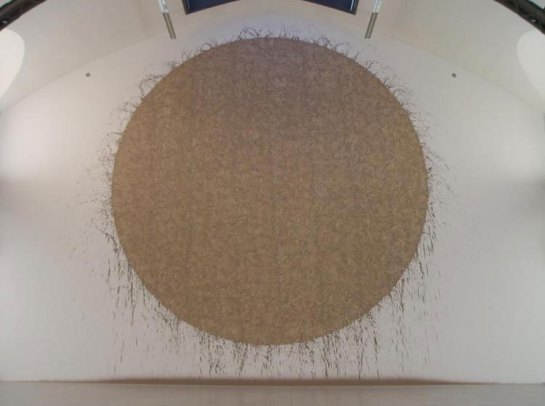 In the Boetti, the biro lines are entirely vertical, in hers they were both horizontal and vertical. Boetti’s ‘Mettare Al Mondo Il Mondo’ series are strong, thought provoking images, a record of the labour involved in making art, hers were not.