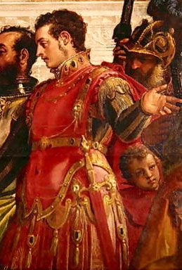 In the performative role of the Internal Spectator, often the painted figures closest to the viewer, we see the painted world through their eyes. The closest of the three figures to us is in profile; the man in the glorious robe. Lanvin identifies him as Ludovico Gonzaga. If anyone is conjuring up this scene it is him, looking into this world from the edges, not perhaps the putative Ottaviano who looks out of the space