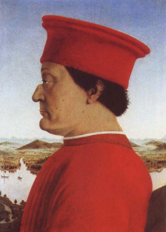 Piero della Francesca: Federico da Montefeltro.1472-4. Tempera and oil on Panel, 47 x 33 cm. Galleria degli Uffizi, Florence.