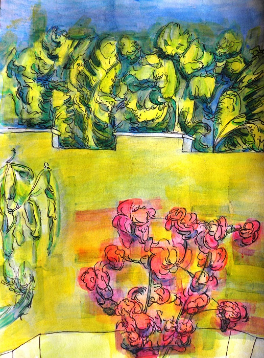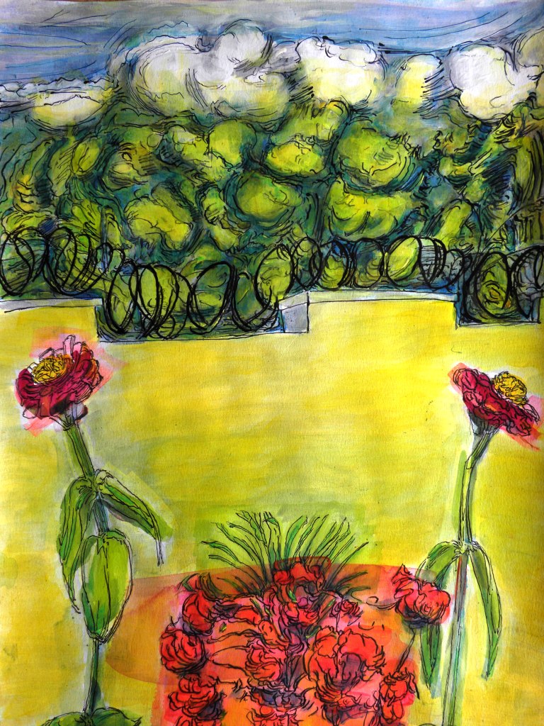 Kirombe garden rainy season 2014 number 2. 300 x 420 mm. Watercolour and Indian ink on paper.