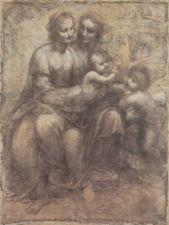 Leonardo da Vinci: 'The Virgin and Child with Saint Anne and John the Baptist', 1499-1500, charcoal and chalk on paper