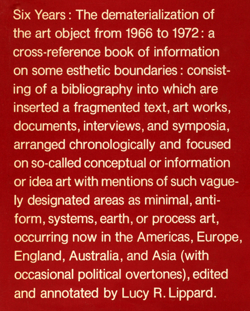 Lucy Lippard 'Six Years: The Dematerialization of the Art Object. 1966-72'
